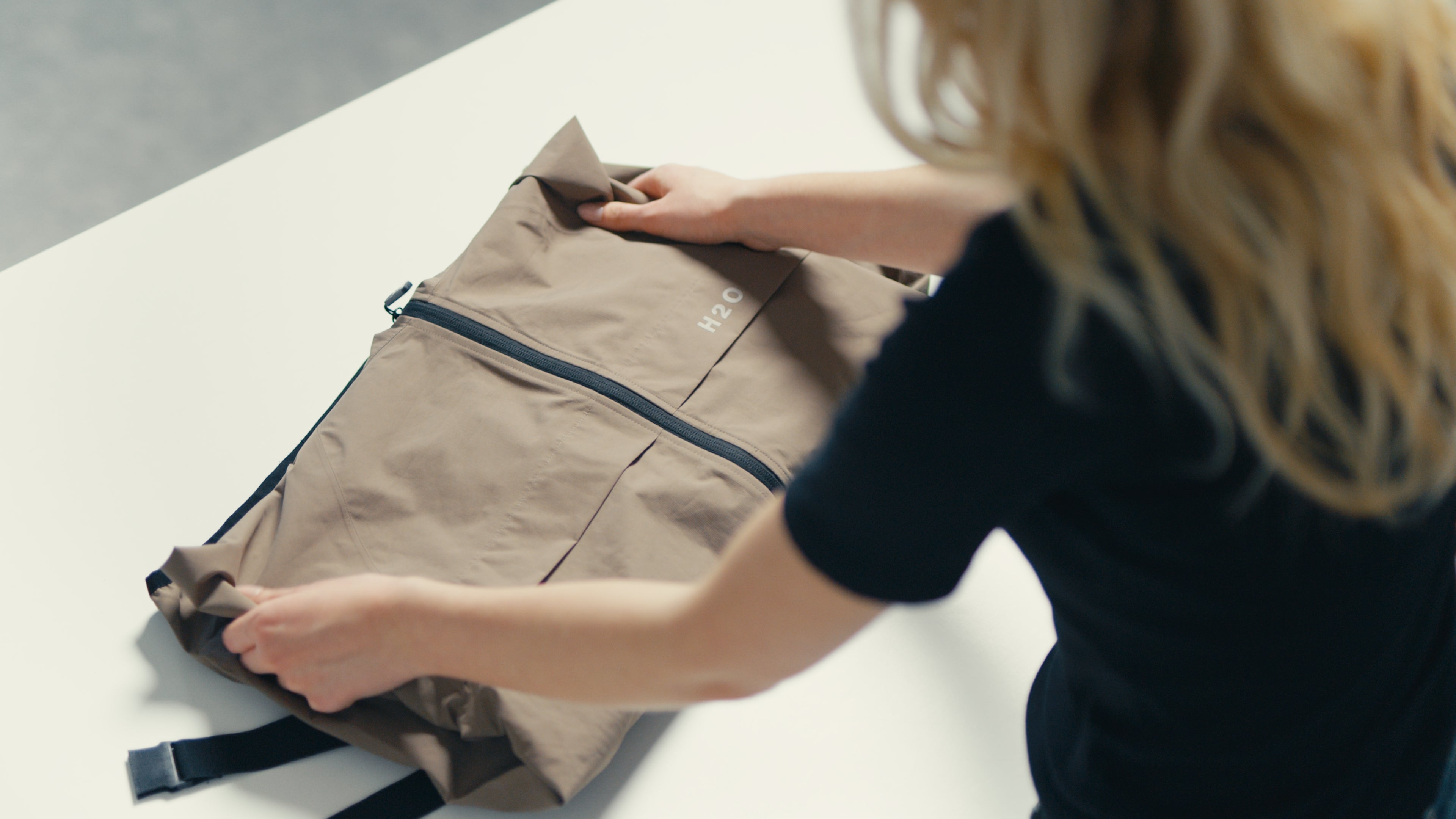 Follow this guide to pack your Rømø Rain Jacket in 10 seconds.